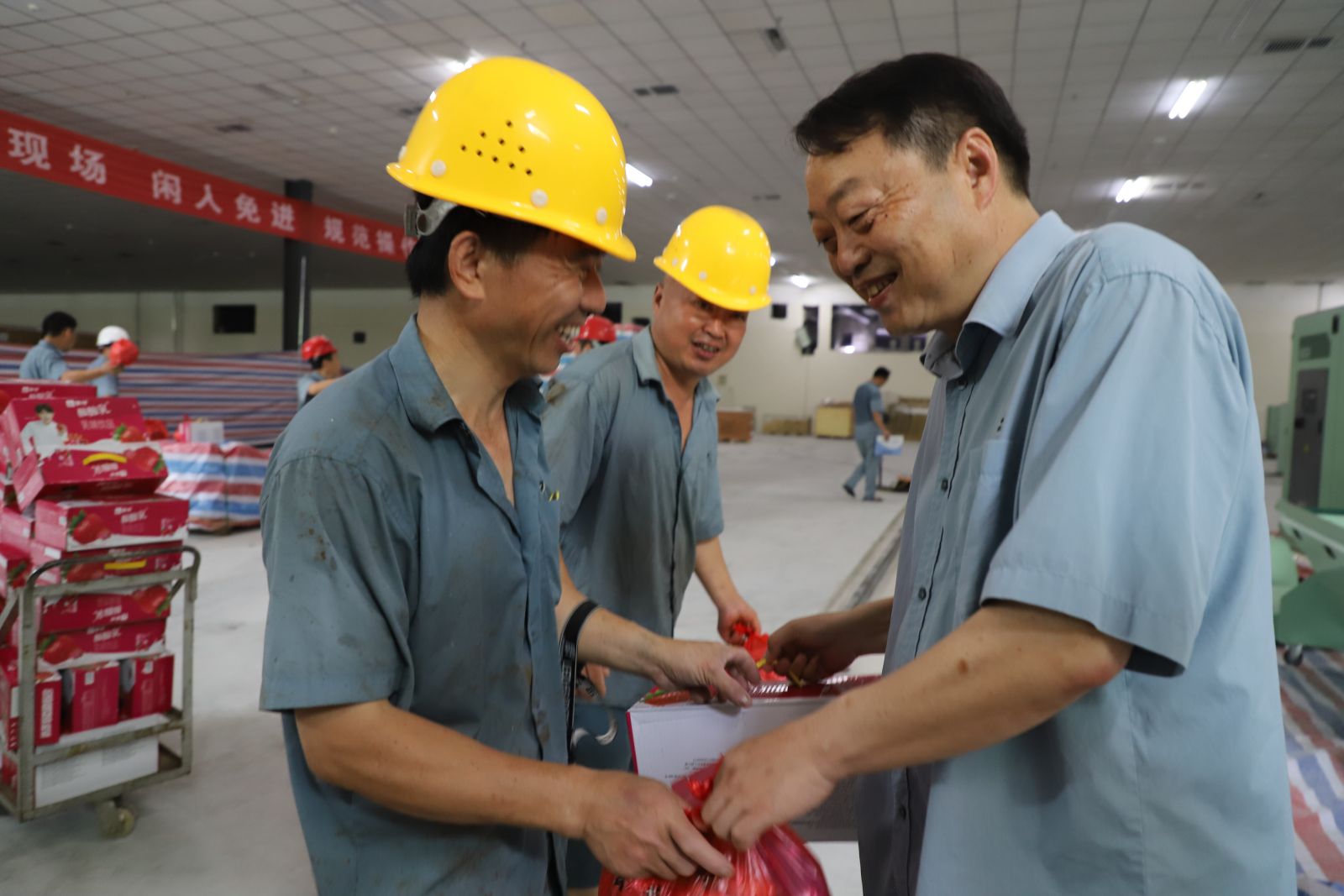 7月24日是大暑的第二天,驕陽似火,悶熱異常,集團黨委副書記、工會主席劉春西帶著公司領導班子的牽掛,來到一分廠建設工地送清涼。