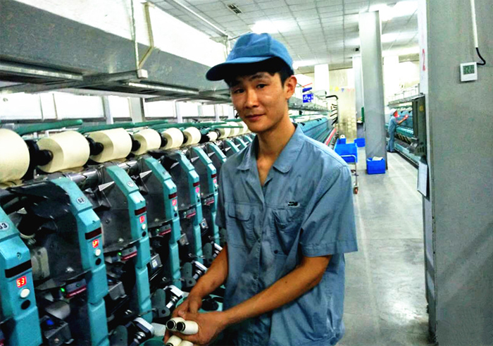 洪天文不僅在賽場(chǎng)上表現(xiàn)不俗,在工作中業(yè)績(jī)也是遙遙領(lǐng)先,在絡(luò)筒工序,一般女員工擋14臺(tái)車,而他一個(gè)人則擋21臺(tái)車,用一個(gè)頂倆來形容絲毫也不為過。在每個(gè)季度的自檢員工公布榜上,都少不了洪天文的名字。面對(duì)外面的誘惑,洪天文也曾動(dòng)搖過,但是后來他還是堅(jiān)定地選擇了華茂。他說,雖然外面的待遇有的比華茂好,但是華茂和諧的工作氛圍是任何別的地方無法比擬的。在他榜樣的作用下,工序其他員工也都表現(xiàn)不俗。